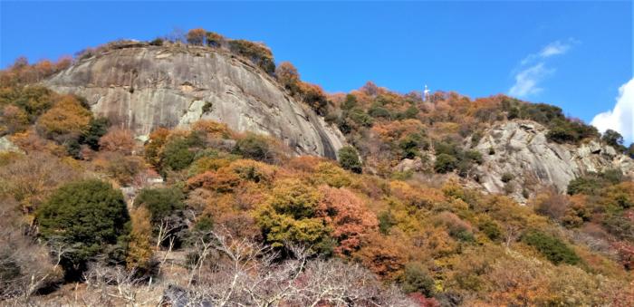 【信玄公生誕500年記念】駅からハイキング「岩殿山からの秋の富士山と大月桃太郎伝説の舞台を巡る」に参加、コースは中央線大月駅スタート⇒岩殿山⇒岩殿山ふれあいの館(丸山公園)⇒円通寺跡(鬼の盃)⇒円通寺新宮跡(鬼の岩屋)⇒子神神社(鬼の血)⇒石動(鬼の杖)⇒百蔵橋⇒猿橋⇒猿倉公園⇒大月市郷土資料館⇒猿橋駅、約8㌔、約3時間30分。大月市の名所で山梨百名山の一つである岩殿山(城址)、意外と知られていない大月桃太郎伝説ゆかりの地巡り、日本三奇橋として知られる「猿橋」まで足を伸ばし、錦秋の大月を楽しんで来ました。残念ながら富士山は靄の中でくっきりとは見えませんでした。