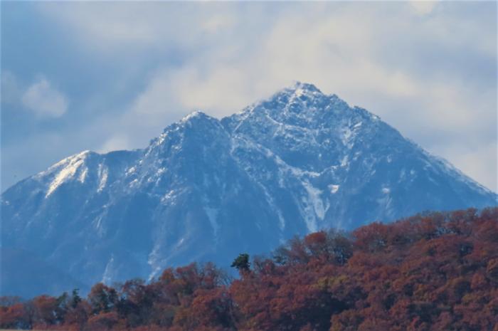 武田神社近くより鳳凰三山(地蔵岳)オベリスクを望む