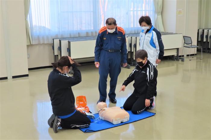 白岡市スポーツ推進委員安全向上の一環として本日埼玉東部消防組合の協力を得て「普通救命講習」を開きました、運動中の万が一に備えての知識及び安全性向上をはかりました。