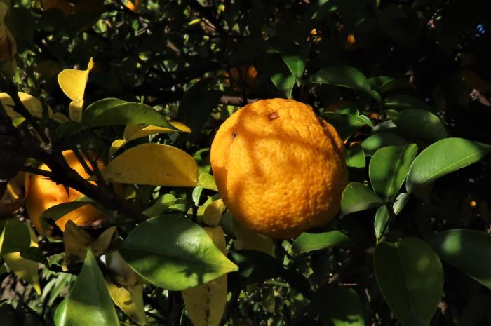 緑のヘルシーロード沿いに実っていたユズ