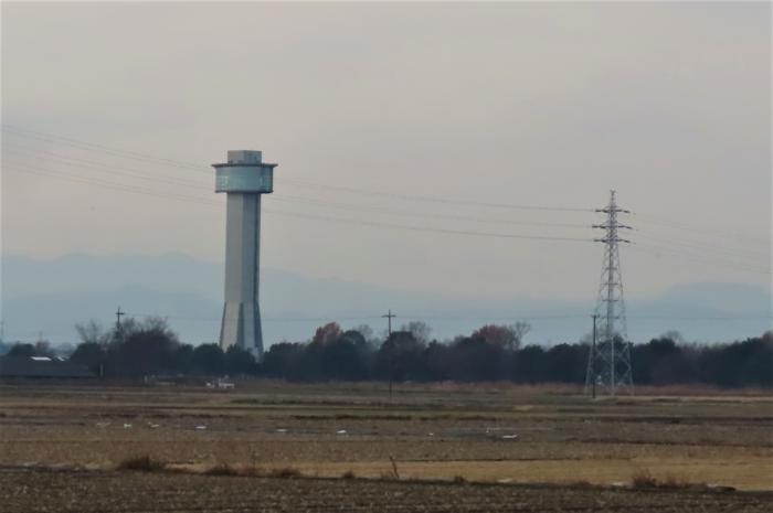 見沼代用水から望める「古代蓮の里展望タワー」田んぼアートが望めます