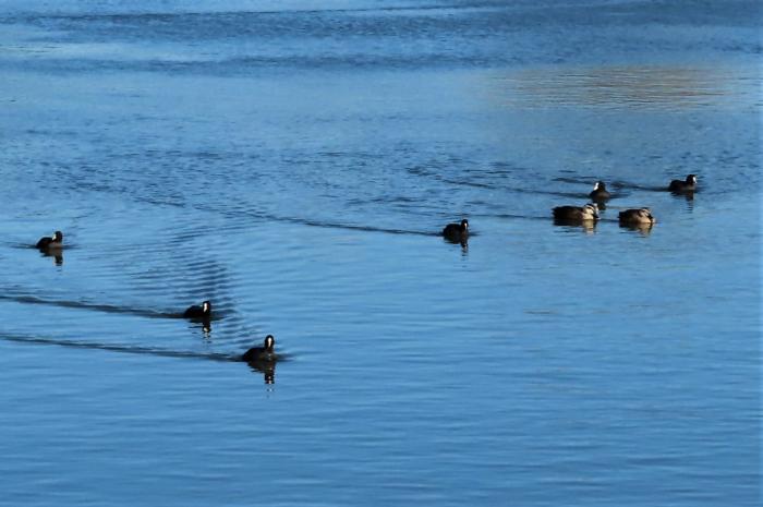 オオバンが仲良く泳いでいる