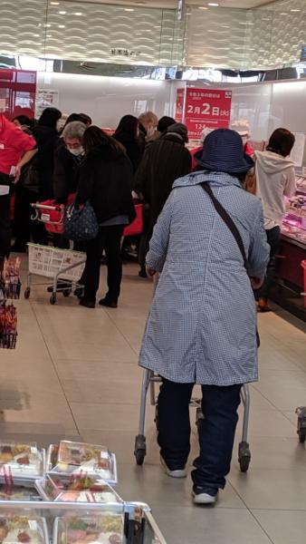 恵方巻きを見に行ったら 凄い人→(° °)┗ 密!密!秘密! とりあえず空いてる 肉巻き恵方巻き! 一応イワシ! イワシの頭は付いて無いけど 鬼は食べたし 豆の炊き込みご飯も作ったし 後は 鬼に金棒で 自分が赤鬼に!