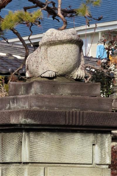 民家の門柱の上に鎮座している「カエル」