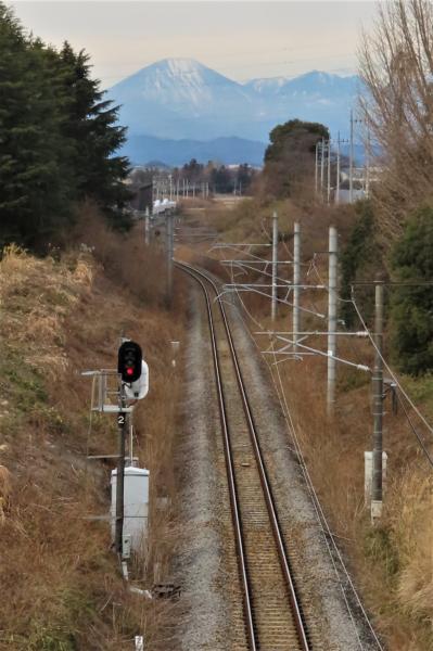 両毛線に架かる橋から男体山が望めた