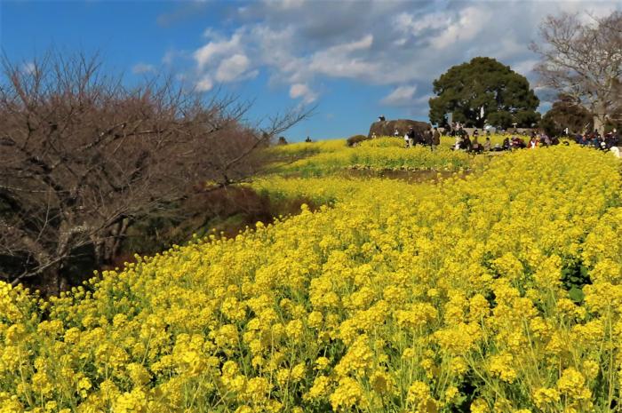 山頂部を埋めるように咲き誇る菜の花