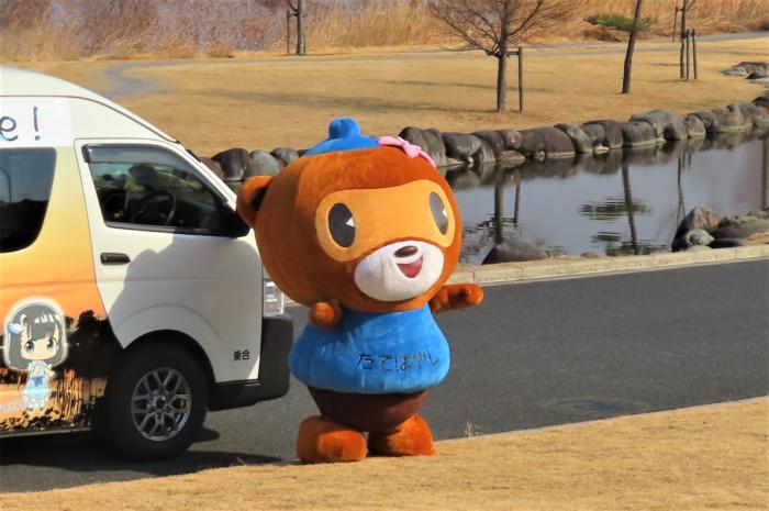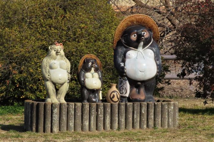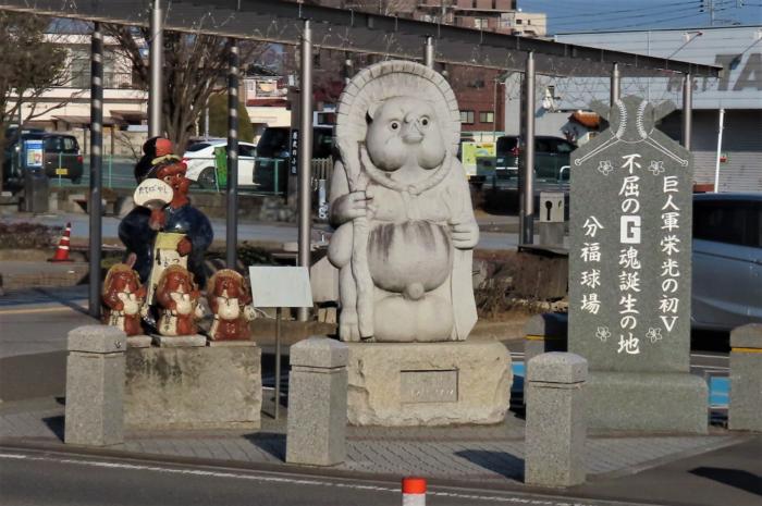 館林駅頭に設置されている巨人軍V1誕生の地分福球場タヌキのオブジェ