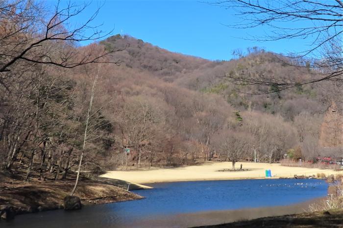 みかも公園東口広場より冬枯れの「青竜ヶ岳」を望む