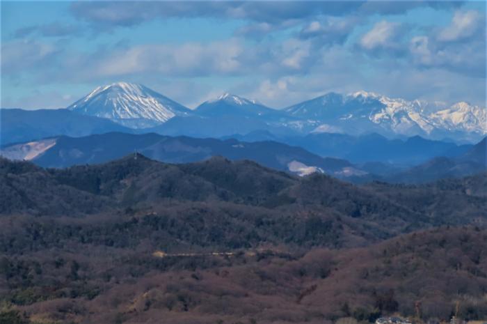 みかも公園「富士見台」より白く輝く日光表連山を望む