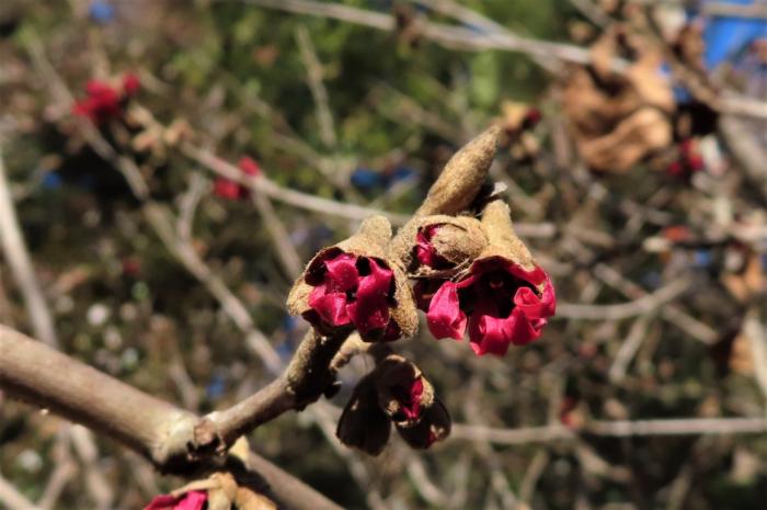 紅花満作 (ベニバナマンサク)の開きはじめた花芽
