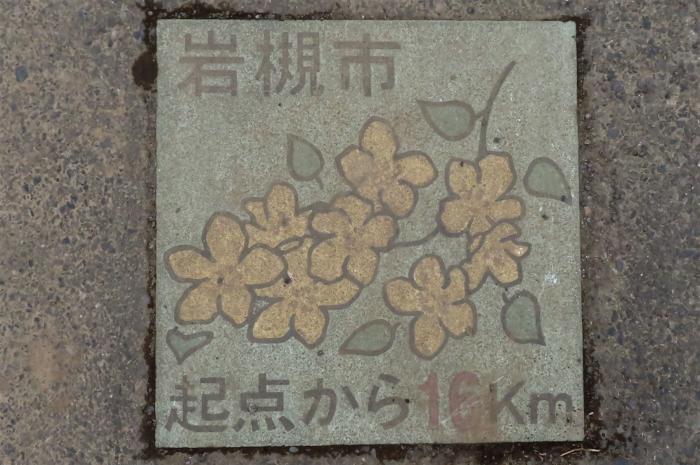 終点からしばらく進んだ地点に埋められている16㌔告知ブロック