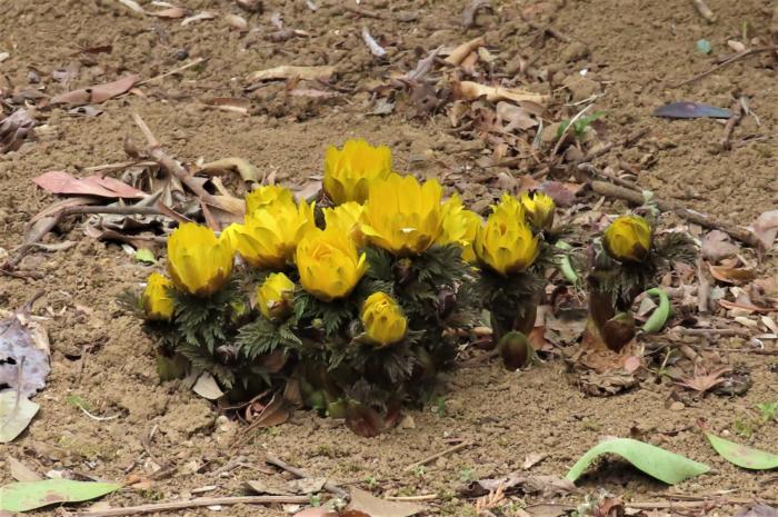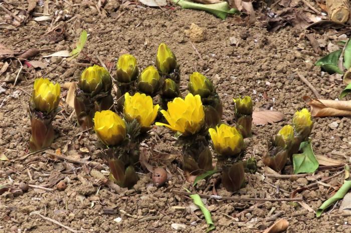 内牧公園に寄り添うお宅の庭に咲き始めて来た「福寿草」毎年楽しみに見学に行っています、今年は後1週間くらいで見頃になるかな