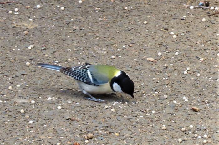内牧公園内で何かをつまんでいる「シジュウカラ」