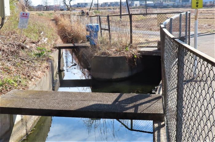 左から流れてきた黒沼用水路が蓮田の黒浜上沼から流れてきた新堀の下を潜って流れ立体交差しています、白岡市にはこんな場所が全部で九か所あります
