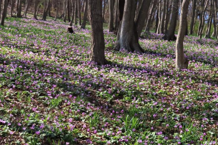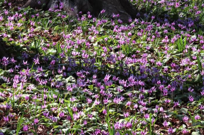カタクリの花は群生に
