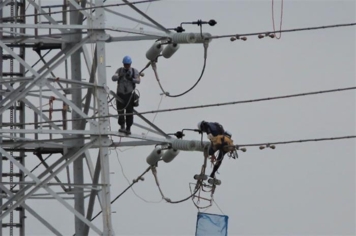 送電鉄塔で作業している人が‥高所恐怖症では出来ない仕事ですね