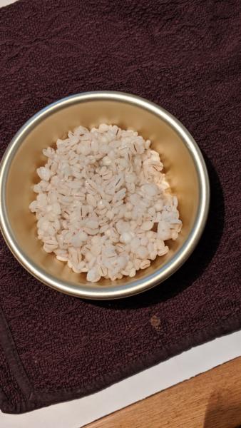 米の飯では無くて 麦の飯! 器をカネの茶碗! 本当はアルミのマッコリの酒坏ですが! 麦と言っても押し麦です 単に煮て、ヌメリをザルで 流しただけです モチモチしてなかなかです! カレーには以外に合います(ノ^_^)ノ