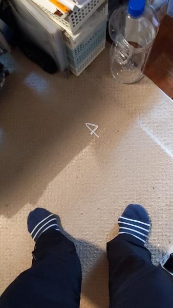朝、台所に行って 座ろうと思ったら 足元に なんだ╮(╯_╰)╭ よく見れば紙の切れ端が 折れて! 何なんだ? なんで4なんだ! と一瞬考えてしまいました! ごく日常生活の一コマです!