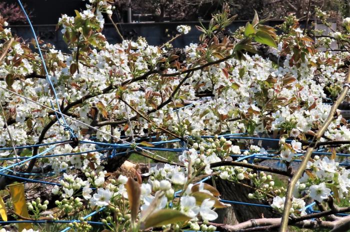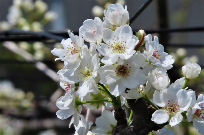 桜が終りかけてくると梨の花が咲き始めて来ます、白岡の各梨園では白く綺麗な梨の花が咲き始め、今では5分咲位までになり美しい彩を添え始めていますのでご紹介いたします。