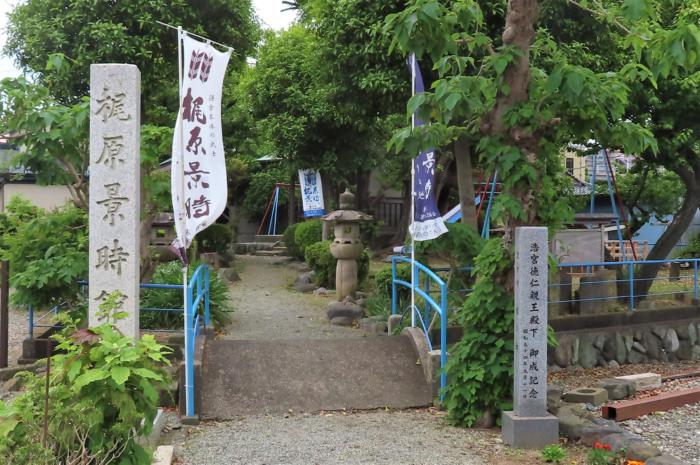 昨日NHK大河ドラマ「鎌倉殿の13人」に出ています「梶原景時」の故郷での駅からハイキング「『鎌倉殿』の智将 梶原景時の里を歩く~幸せ七龍さがし~」に参加、コースは相模線寒川駅スタート⇒寒川観光協会(受付)⇒景観寺⇒一之宮八幡大神⇒妙光寺⇒梶原伝七士の墓・箙の梅記念碑⇒梶原景時館址⇒貴船大神⇒八角広場(相模線旧西寒川支線・西寒川駅跡・相模海軍工廠跡)⇒一之宮緑道⇒水道記念館・水の広場⇒西善院⇒寒川神社⇒興全寺⇒寒川駅、約10㌔、約3時間、新緑のなか様々な歴史に触れられた寒川町を巡ってきました。