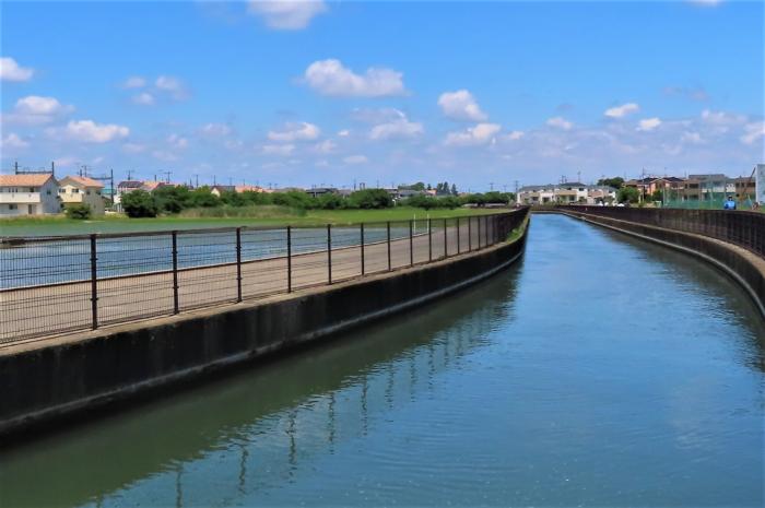 農繁期のため満々と流れる「葛西用水」とコスモスロード