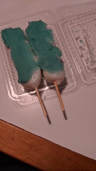 夏向きなんでしょうか(ノ^_^)ノ ラムネアンのダンゴ(ノ^_^)ノ しっかりラムネの味のアンコでした(ノ^_^)ノ 色がちょっとキツイ感じですね