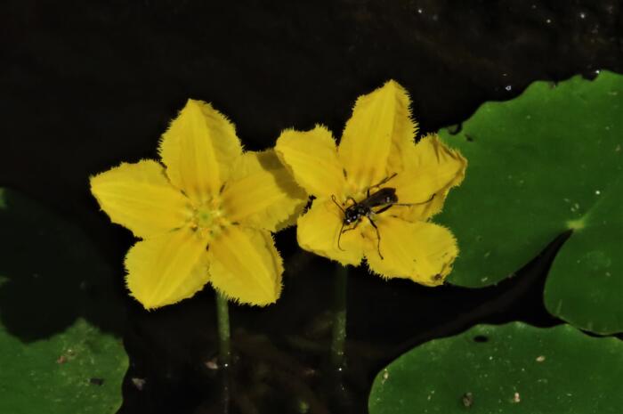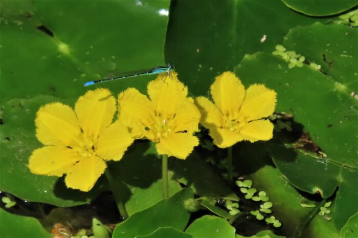 アイキャッチ画像はトンボがとまっているアサザ