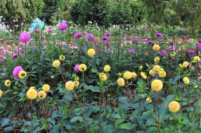 山の中に突然現れる、色とりどりのダリアが咲き誇る山峡の花園で約350種類、5,000株のダリアが咲き誇っています。