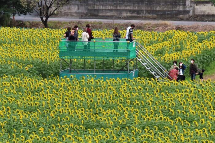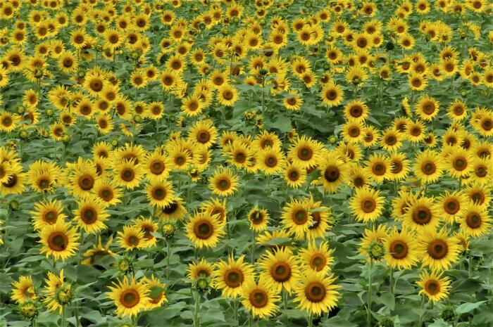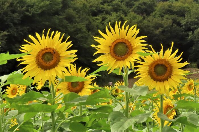 ひまわりの種を八月に行い毎年10月上旬に見頃を向かえるようにしています、但し今年は天候不順で例年より一週間くらい遅い見頃となったようです。
