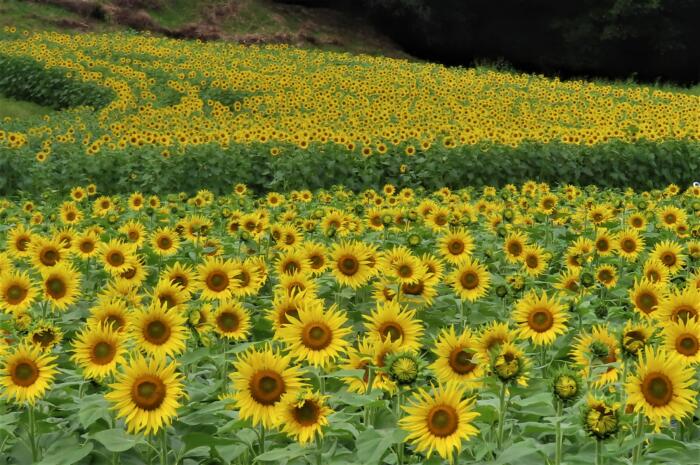 みどり市笠懸町にある鹿田山東側の吹上地区のひまわり畑、その数は約12万本にのぼり、約2ha一面にひまわりの花が咲き誇ります。