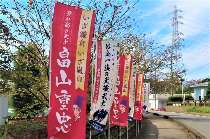 NHK大河ドラマの影響で嵐山町を始め滑川町等比企地域で目立つのぼり旗が飾られています