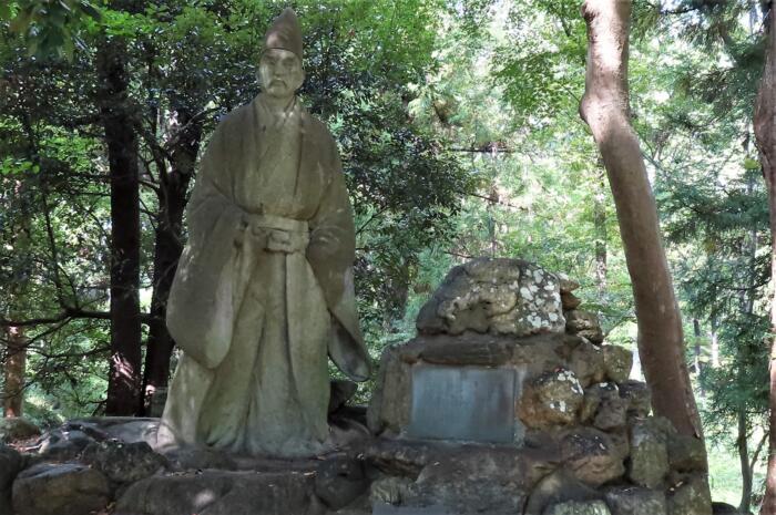 菅谷館跡内に鎌倉に向かって建つ畠山重忠像