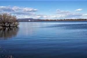 菅谷館三の郭跡から県立嵐山史跡の博物館を望む