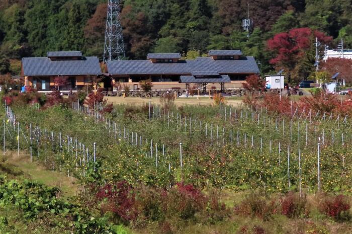 リンゴ畑に囲まれている「道の駅あがつま峡」