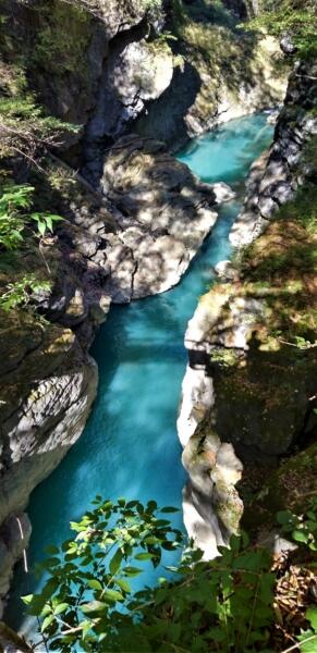 アイキャッチ画像はふれあい橋から吾妻峡最下流部の流れを望む