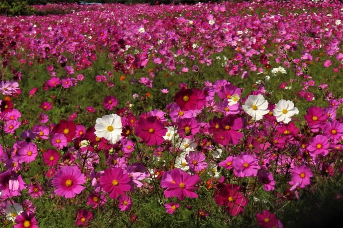 蓮田市駒崎地区の休耕田を利用した約5haの「コスモス畑」見頃を向かえて色とりどりのコスモスが咲き乱れています。