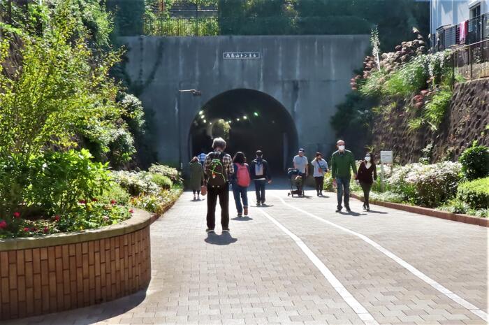 東急東横線が高島山を貫いた「高島山トンネル」緑道の一部として使われています