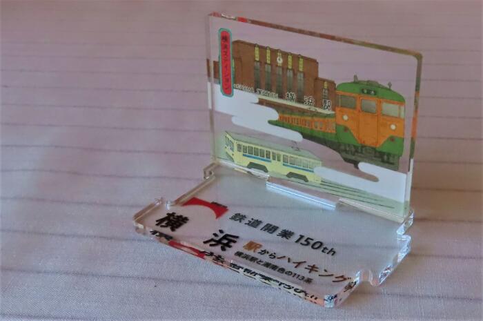 鉄道開業150周年駅からハイキングスペシャル記念品として頂いた、横浜版「錦絵風鉄道車両アクリルスタンド」あと一コースあります