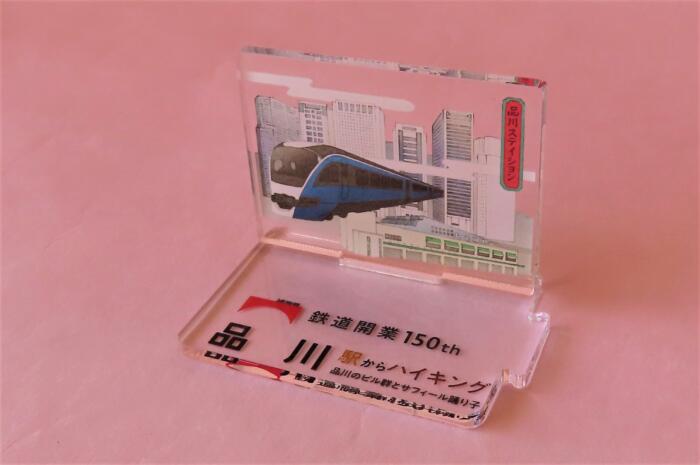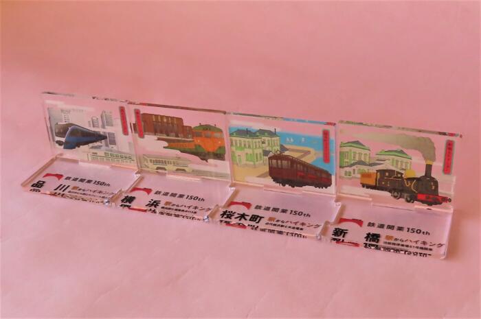 鉄道開業150周年駅からハイキングスペシャル記念品として頂いた、品川版「錦絵風鉄道車両アクリルスタンド」