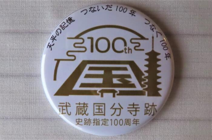参加記念で頂いた武蔵国分寺跡史跡指定100周年記念缶バッチ