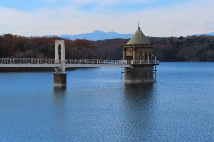 アイキャッチ画像は青空を映し込む狭山湖越しに秩父山系を望む