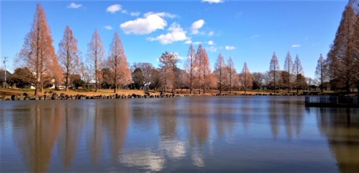 加須市にあります「はなさき公園」へ渡り鳥の飛来状況を散策を兼ねて観て来ました。公園内にある鯉の池には何種類かの鳥たちがのんびりと浮かんでいました。 アイキャッチ画像はすっかり葉を落としたラクウショウ並木と青空を映す鯉の池…
