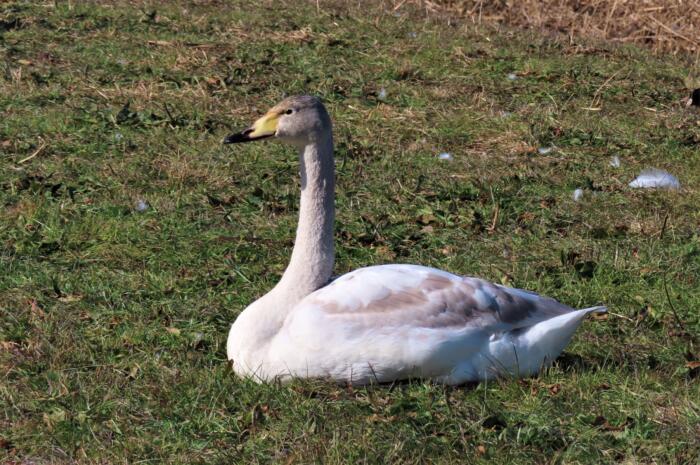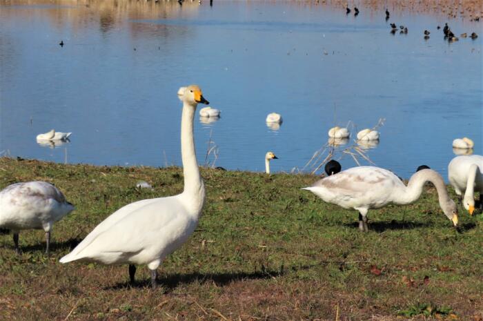 アイキャッチ画像は城沼の岸に上がりのんびりと草を食んでいる白鳥達
