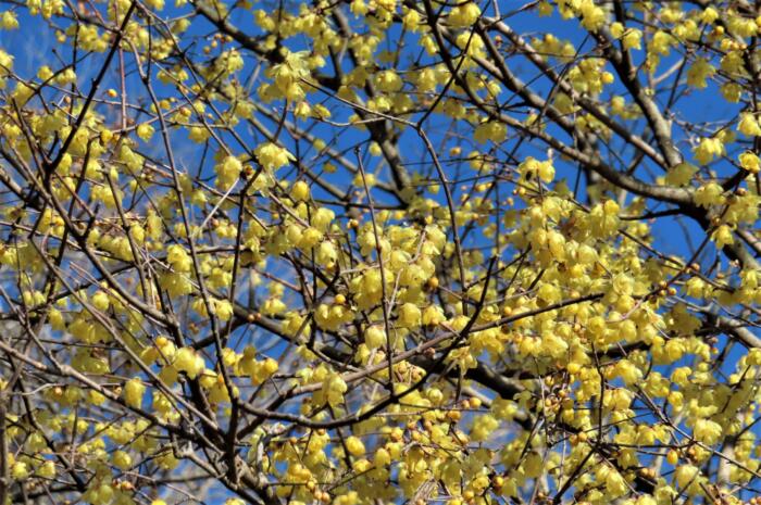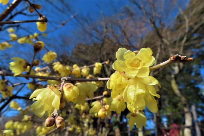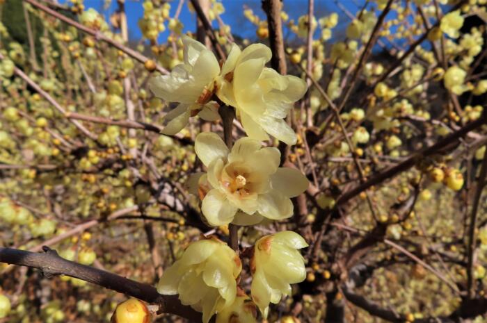 アイキャッチ画像は青空の下ほのかな香りを漂わせている謙信平の蝋梅