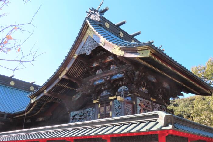 沢山の彫刻で飾られている本殿