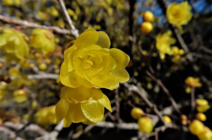 群馬県板倉町に鎮座する「雷電神社」境内の蝋梅が見頃を迎えて来たので観に行って来ました、境内には約500本の蝋梅が植えられており見事に咲き誇っていました、これから開きそうな蕾も沢山ありますのでしばらくは楽しめると思います。