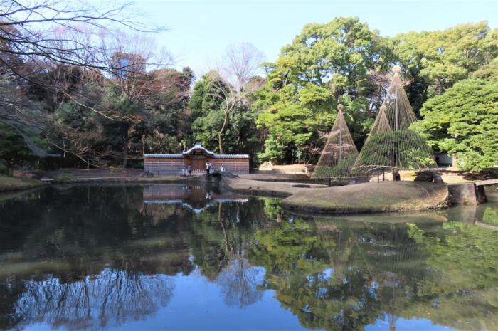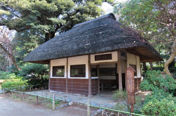 小石川後楽園内にある茅葺の酒亭久八屋