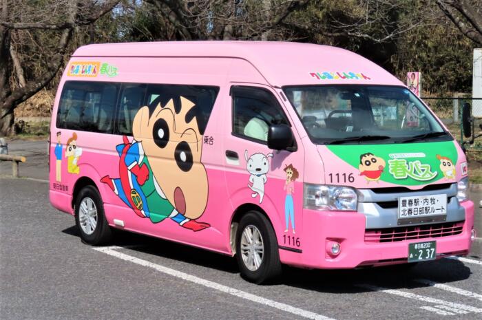 北春日部駅から乗った春バス「おでかけしんちゃん号」内牧公園まで乗りました(150円)