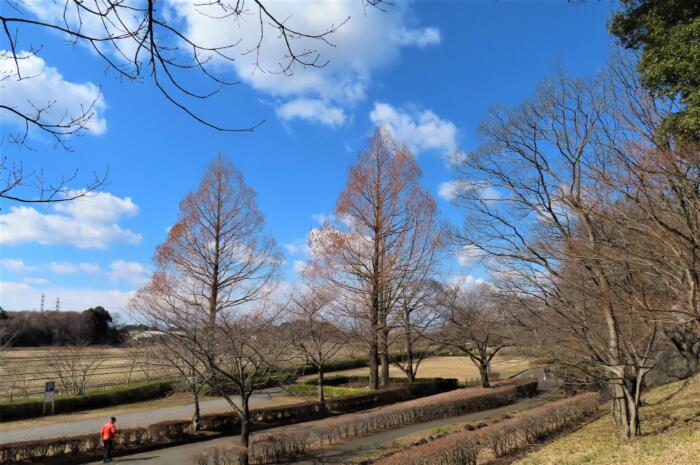 落葉した木々がある内牧公園