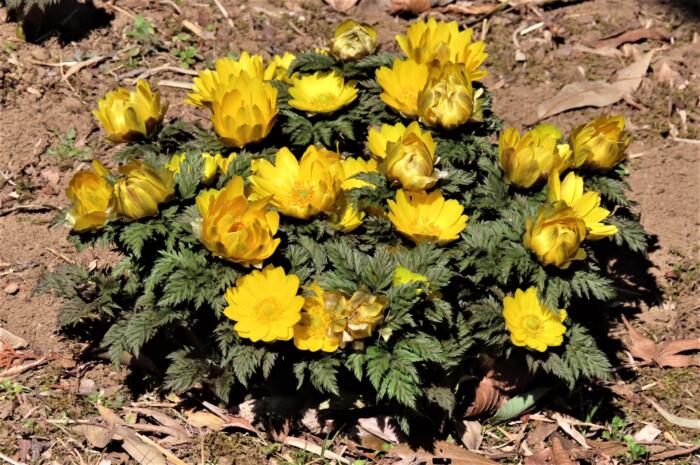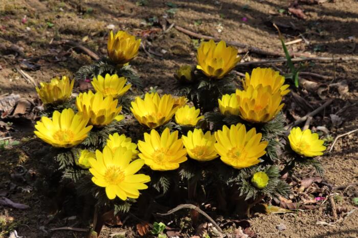 アイキャッチ画像は咲き誇る福寿草